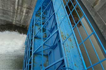 ゲートを挟んで上流の水位と放流している水しぶきを一緒に撮りたくて頑張る。