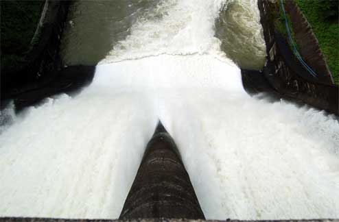 ゲートは2番と3番が開いているので足元の左右から55mの滝がある状態です。