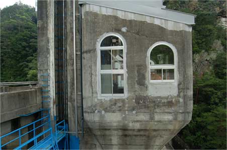 ここに入ると天端レベルの真中から下流側を見下ろすことができるのです。