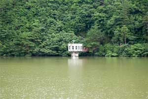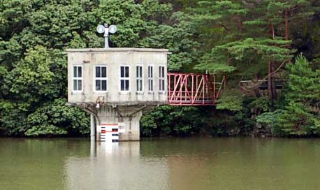 そしてあまりの水位に首だけちょこんと出している取水塔。