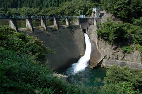 智奈洞取水堰堤は智奈洞川の水と石徹白川の水と三面谷からの水を全部集めて九頭竜ダムへ