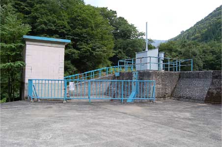 三面取水堰堤で三面谷からの水を集めて石徹白ダムへ