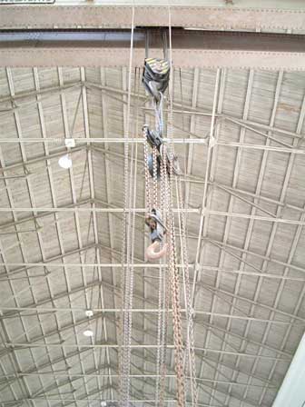 天井を支える鉄骨の細いこと細いこと。
