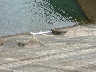 この緑の檻に守られた常用洪水吐きは一段低いところにあります。