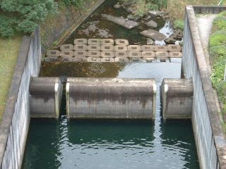 半円式の洪水吐きからすっとんと落ちているこの距離が曲者なのでしょうか。