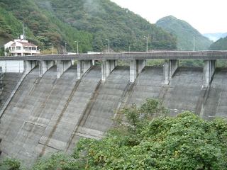 左岸の導流壁。フーチングは雨上がりなのでびしょびしょでした。