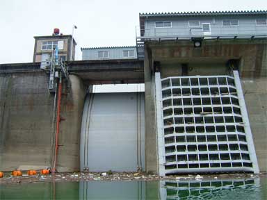 12.6m×8.6m。九頭竜ダムの非常用洪水吐きのクレストゲートと同じタイプ。