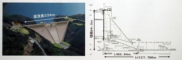 堤頂長は188.5mでとてもコンパクトな堤体です。