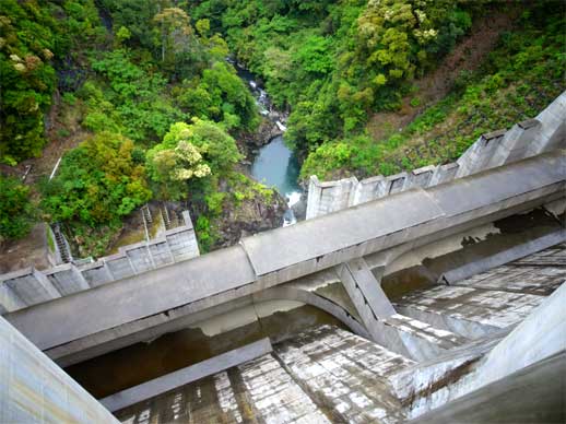 “横瀬川ダムの洪水吐きは、当初、導流部を漸縮導流形式、
