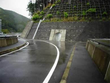 側水路の両端に設けられた水抜き穴で少量の水はそのまま