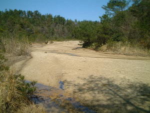 鎧ダムでせき止めた土砂はこんなに大きな広場を作っていました。