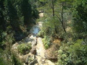 帰り道、急峻な沢筋です。日本はこういう地形が多い為に河川土木技術