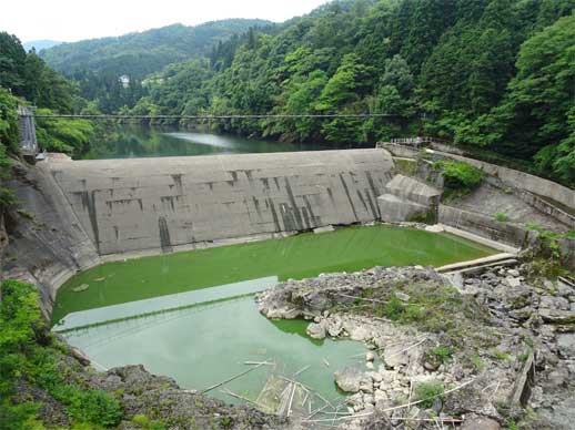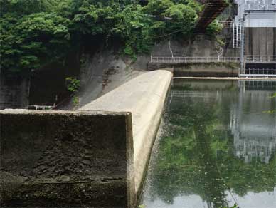 薄い堤体であることがメイソンリーフェイシングダムとして生まれた事を語っています。