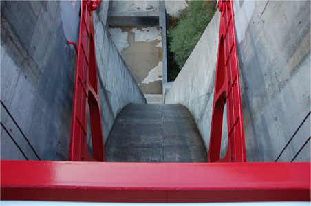 真っ赤な2号クレストゲートの上から見下ろしたところ。