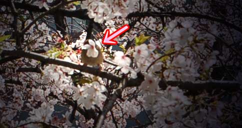 桜の中に雀の姿を見つけました。