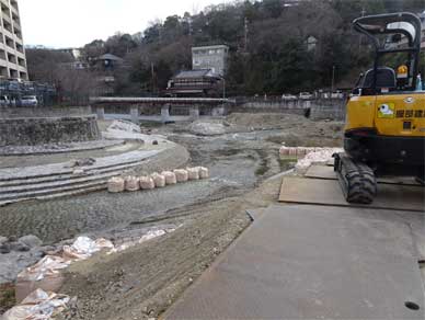 綺麗に片づけられた上にトンパックが並べられ工事が始まっていました。