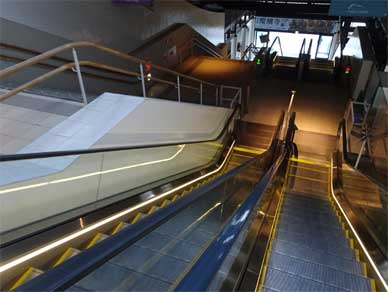 「まだ博物館は開いていませんけどエスカレーターかなり長いですから乗ってみましょうか」
