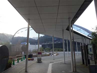エスカレーターを上がって水平の通路を通って到着しました九州国立博物館。
