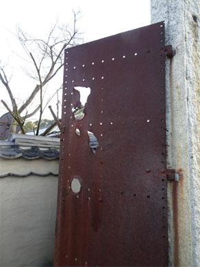 日清戦争の艦のパーツが現役で門扉。