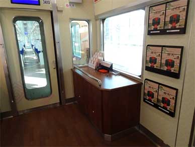 喜んで乗り込むと広告のスペースに沿線の観光地の説明とか