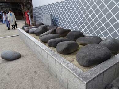 力石という物で、有名な力士が持ち上げた石を記念に奉納したものだそうです。