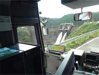 細い道をどんどん進んで穴内川ダムにバス到着です。