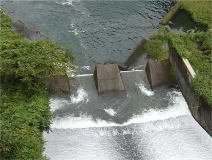 穴内川ダムのスキージャンプの端のslotted bucketのデフレクターです。