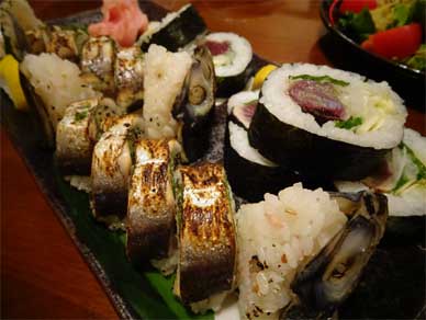 土佐巻きと焼き鯖寿司〜。
