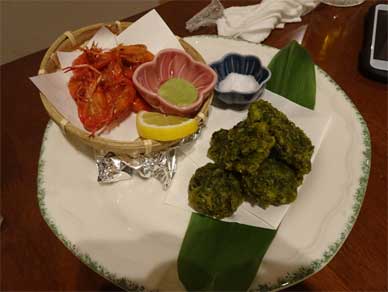 四万十川の川エビとアオサの唐揚げ。