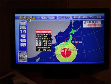 夜中にふと目が覚めてTVで台風チェック。