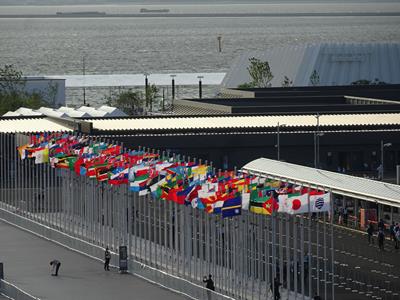 万国旗が全力ではためいています。