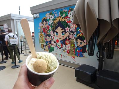 待ち時間はイタリア館の横のジェラート確保のために並んで消費。
