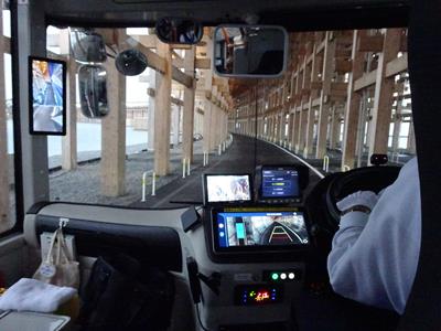 e-Moverで大屋根リングの下を通って移動。