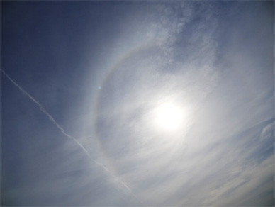 丁度空を見上げると日暈が出ていました。