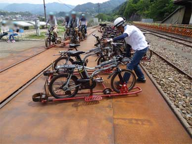 真ん中の大きなレバーを使ってスタッフの方が手際よくレールから車両を引き揚げて行かれます。