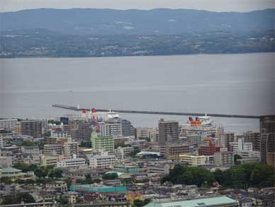 朝、あの船で別府に到着して夕方また乗船して帰ります。