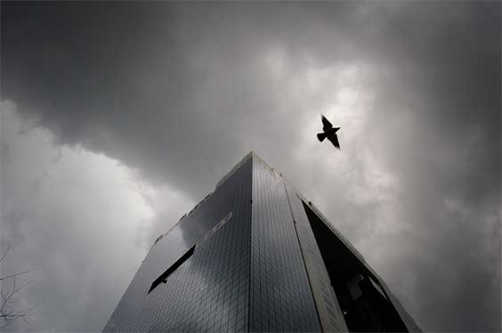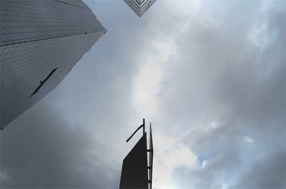 雲の流れがスカイビルから湧き出すような一瞬