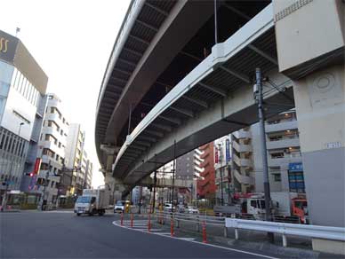地上に上がって、高架を見上げ、なるほど。