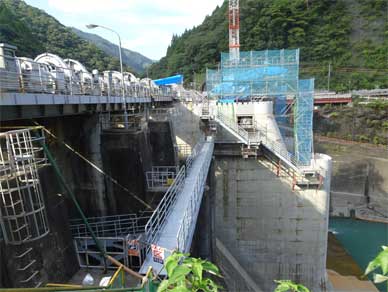 前回、見学させて頂いた時は堤体が切り欠かれていた時でしたから