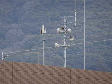 庁舎の屋上のサイレンのスピーカーとアンテナだけ。