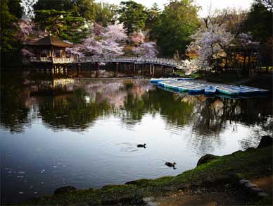 鷺池のボートや浮見堂の美しい景色のために