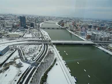 展望台から見た信濃川上流方向。