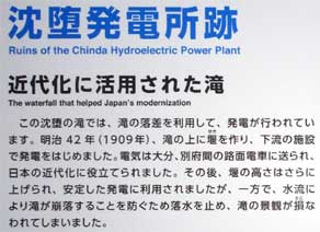 沈堕の滝と初代の沈堕発電所の説明板です。