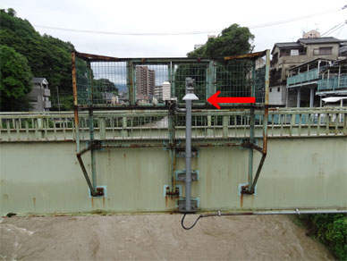 川の中の怪しいものは反対側から見ると量水標であることが分かりました。