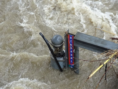 そして川のど真ん中に立っている量水標。