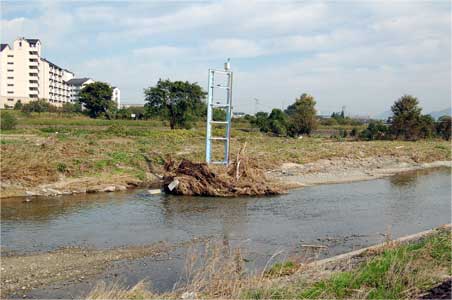 諸越橋の左岸にあるフェンスで頑丈に守られているテレメータ観測局。