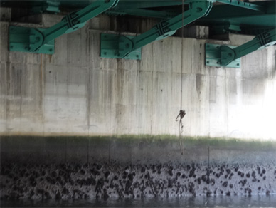 橋の下をくぐる時に時々ぶら下がっているロープ。
