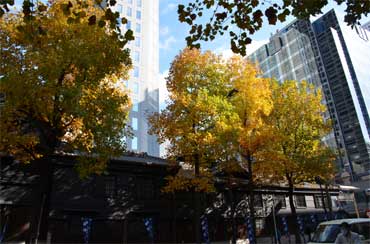 大阪、北浜のオフィス街にも秋の彩が訪れた勤労感謝の日。