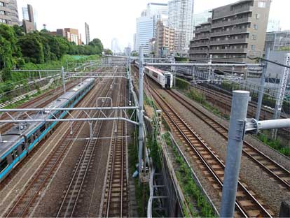 素敵なレンガと鉄条網と青空を見ながら目黒川に移動。