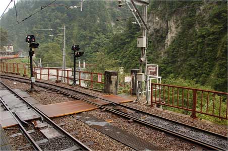 腑抜けのままホームを改札に向かって歩くと黒部川第三発電所への入口が線路の向こうに。